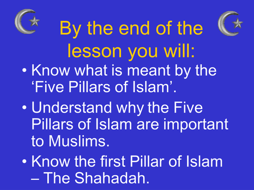 Suitable for teaching 5 to 7s. The Five Pillars of Islam KS3 KS4 Lesson Pack. Sincerely reciting the Muslim profession of faith Salat.